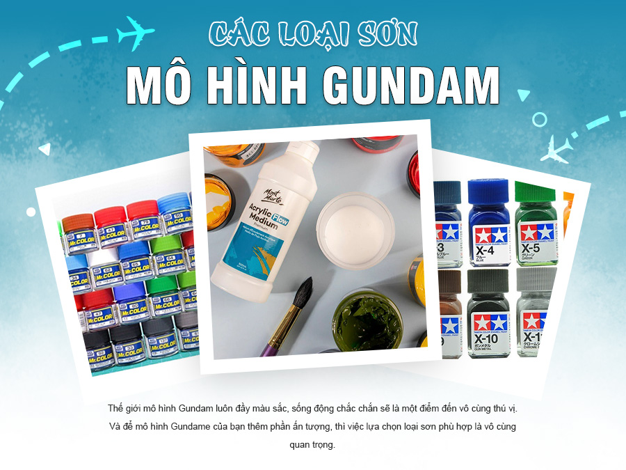 Trên thị trường hiện nay có rất nhiều loại sơn khác nhau, mỗi loại đều có những ưu điểm và nhược điểm riêng. Dưới đây là một số loại sơn phổ biến nhất và đang được ưa chuộng nhất trong giới mô hình Gundam: