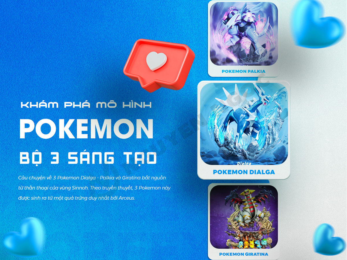 Nếu bạn là người đam mê thế giới Anime, cụ thể hơn là bộ anime Pokemon chắc hẳng đã từng nghe đến Pokemon bộ ba sáng tạo. Vậy bộ ba sáng tạo gồm những Pokemon nào? Hôm nay, hãy cùng Nguyên Ngọc Figure khám phá mô hình Pokemon bộ ba sáng tạo vô cùng đặc biệt với những Pokemon huyền thoại nắm giữ sức mạnh không gian, thời gian và phản vật chất.